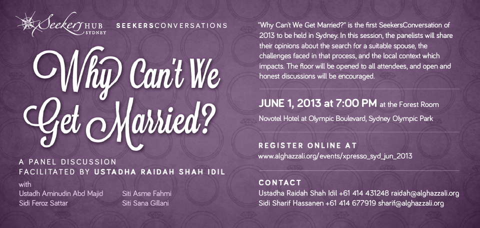 There you have it, ladies and gentlemen – our exciting first Sydney SeekersConversation for this year! I’ll be facilitating the event, and I’m really looking forward to talking to the panelists as well as opening up the floor for the audience. Most people have a LOT to say about marriage, so this will be interesting. Come down and join us!